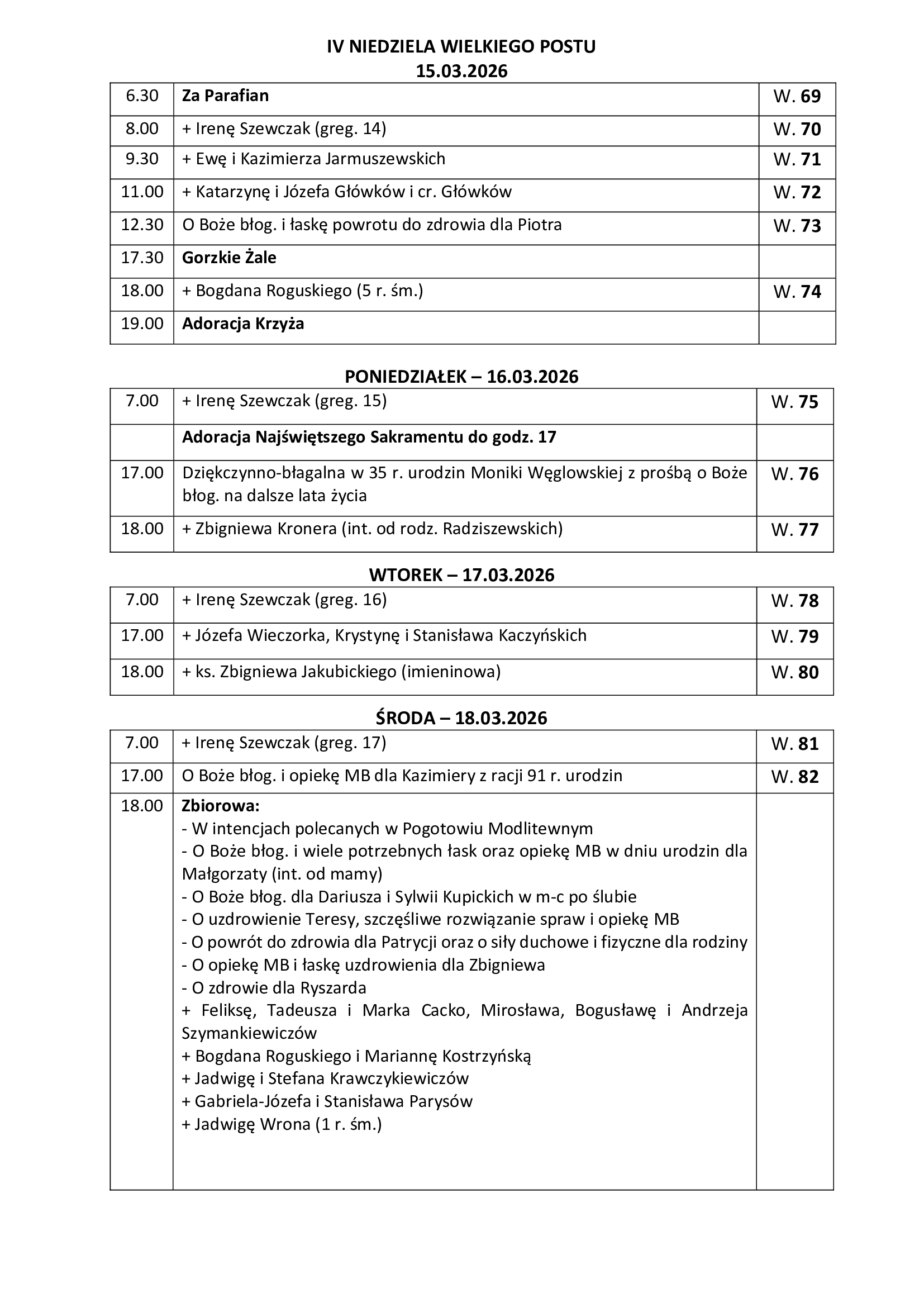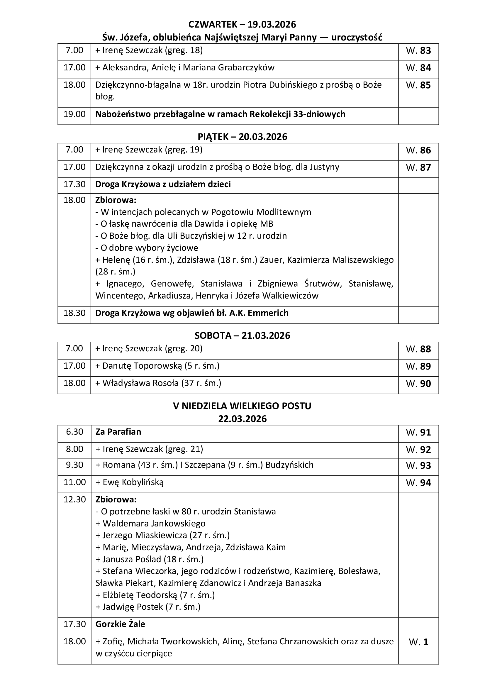 Intencje Mszy św. 15-22.03.2026